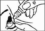 Осторожно сжимайте флакон, пока капля не выльется в оттянутое нижнее веко.